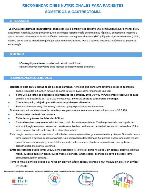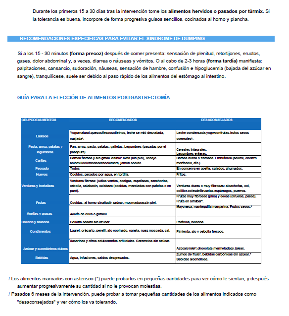 Recomendaciones postgastrectomia